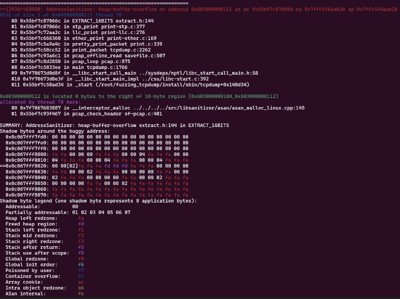 여기서 우리가 알 수 있는것은 EXTRACT_16BITS에서 heap-buffer-overflow가 발생했다는 것이다.