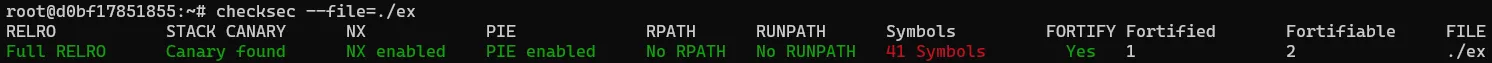 - FORTIFY : fortify 보호기법이 적용되었는지 아닌지. (단계 상관 없이)
