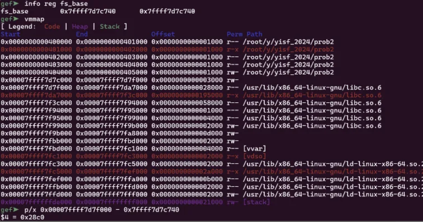 - 원래의 _dl_fini의 값을 가지고 연산하여 fs_base + 0x30의 위치에 있는 key 알아낸다.